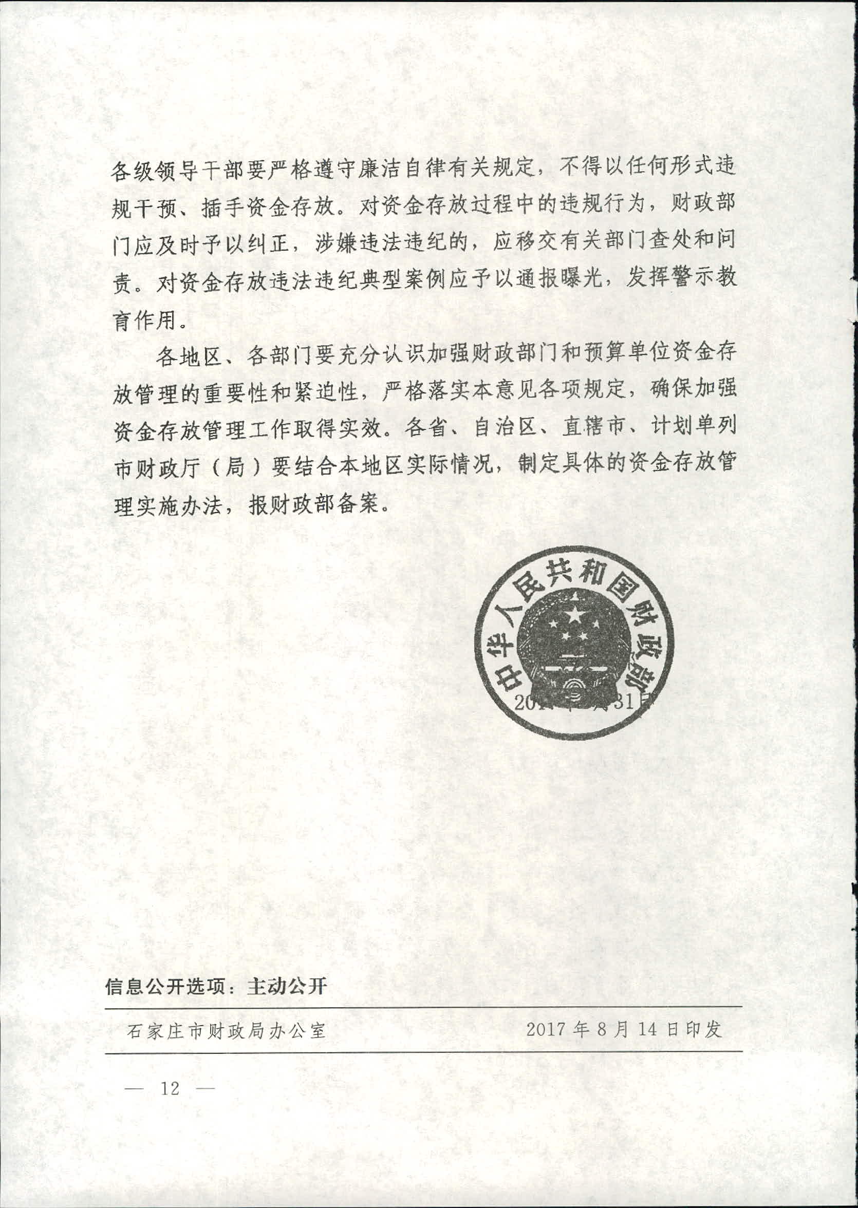 新葡京官方转发《财政部关于进一步加强财政部门和预算单位资金存放管理的指导意见》的通知