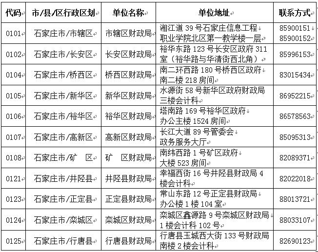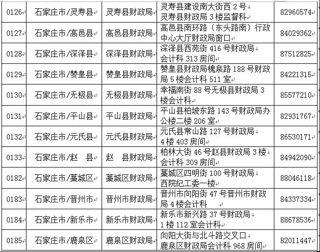 报考石家庄考区2016年第二季度会计从业资格考试且成绩合格的考生,请于7月26日起携带本人身份证原件(复印件无效)到报名所选辖区会计管理机构领取合格证书,证书保管期限为6个月,过期未领,如有遗失毁损,考生个人自负。 建议考生在领取证书之前,先通过“河北财政信息网”——“会计服务”栏目——“会计人员信息验证查询”功能来查询个人档案信息,按照个人信息中“现所在地行政区划”的内容到相应的管理机构办理证书领取事宜。例如,现所在地行政区划为“石家庄市/市辖区”的,要到石家庄市会计人员从业资格证管理中心领取,为“石家庄市/裕华区”的,要到裕华区新葡京官方会计科领取,等等。 石家庄市会计人员从业资格证管理中心网址: http://site.conac.cn/www/051020000/60054146/index.html 会计人员信息验证查询地址: http://kjry.hebcz.gov.cn:7001/acms/portal/IndexAction.do?method=frontLink&link=acmsQuery 附表:石家庄市各级会计管理机构联系方式 石家庄市会计人员从业资格证管理中心 2016年7月22日